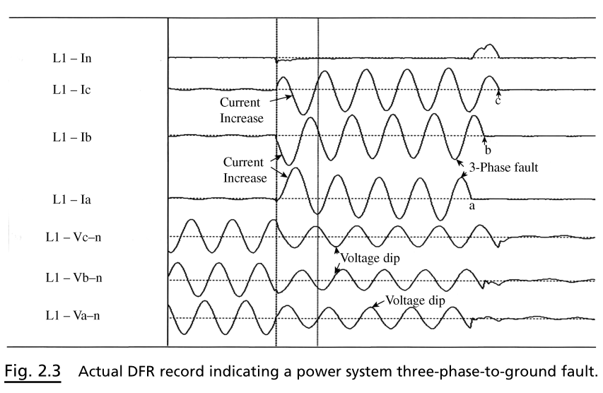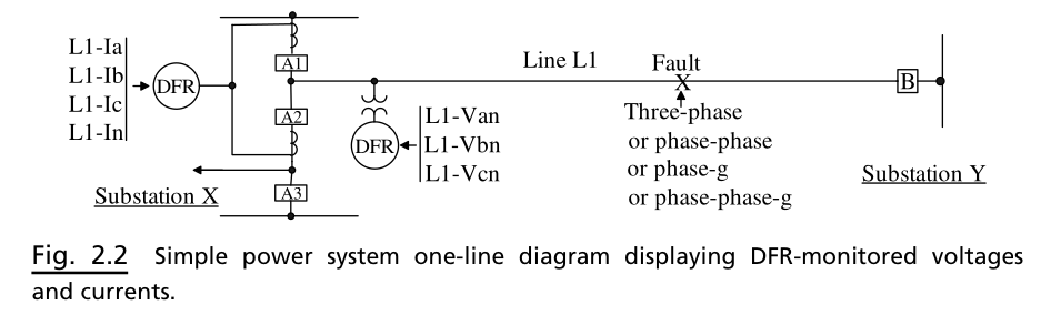 Skema gangguan tersebut dapat dimonitor oleh DFR (Digital Fault Recorders) dengan membaca tegangan 3 fasa-netral, arus 3 fasa dan arus netral. DFR menerima input dari penghantar melalui transformer arus (CT) dan transformer tegangan (PT/CVT). Gambar berikut merepresentasikan hubungan interaksi elemen tersebut.